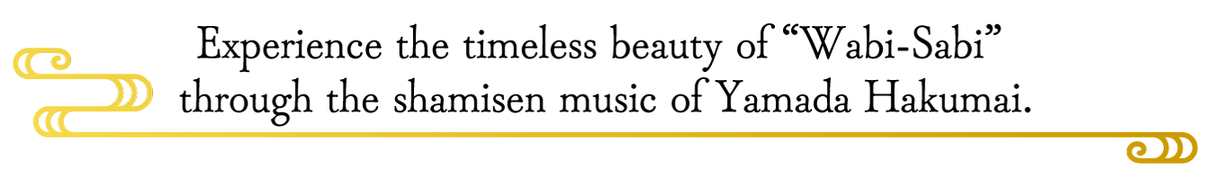 For over 25 years, Hakumai has captivated audiences with performances that blend traditional Japanese sensibilities with a style anyone can enjoy. His mastery and unique expressiveness bring to life the delicate, resonant tones of the shamisen—music that speaks directly to the heart.