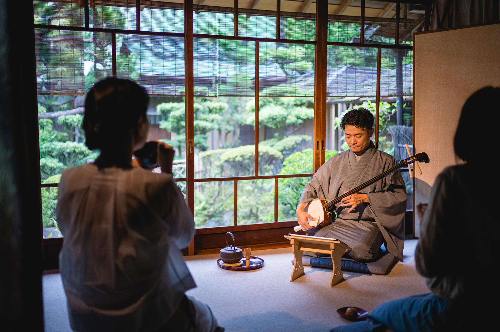 Enjoy traditional Nagauta (Kabuki and Samurai music), Western tunes with a touch of wabi-sabi—the Japanese beauty of imperfection and age—and original ambient compositions. Each program is tailored to the season and your preferences for a truly memorable experience.