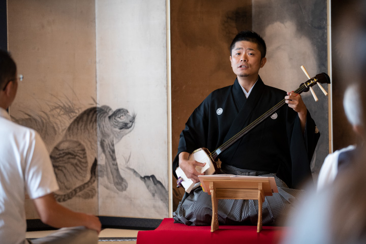 The shamisen is an instrument that paints landscapes in sound. Whether in a Japanese garden, at a temple or shrine, aboard a boat, or even on a train, its tones blend seamlessly with the scenery. In bars and lounges, it can create an immersive atmosphere that fills the entire space.