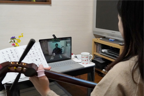 オンライン稽古は 、遠方の方や体調、天候等を気にされる方でも安心して続けられます。設定のサポートも致します。