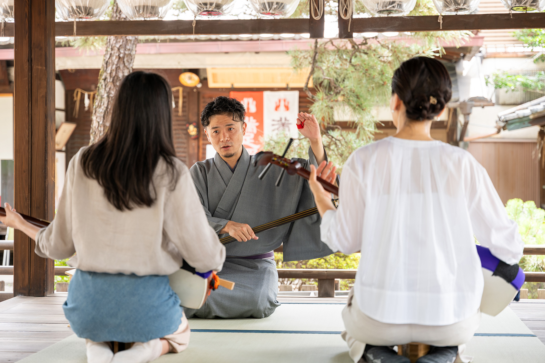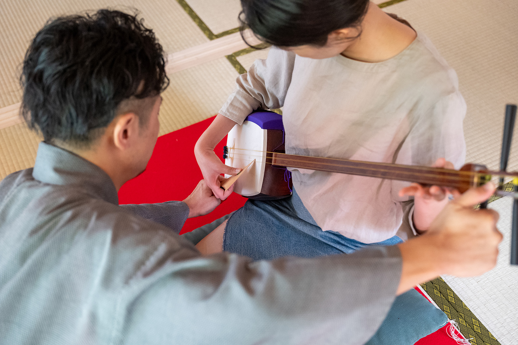 三味線はむずかしいイメージがありますが、白米は根気よくお伝えします。体験では音楽未経験でも、あっという間に弾けて楽しめます。